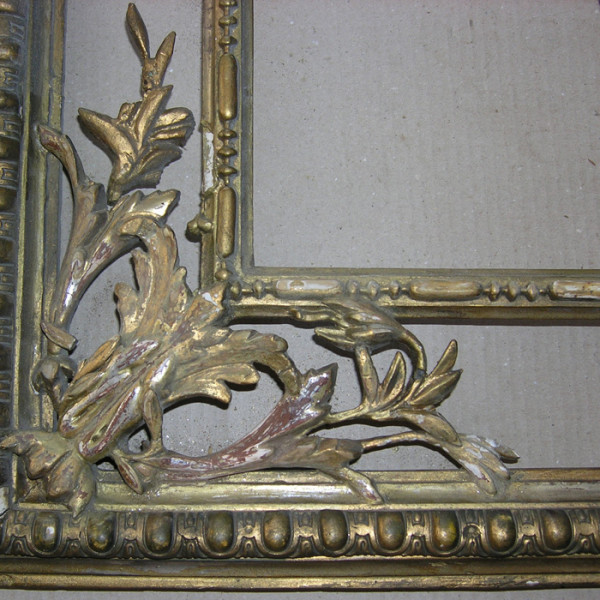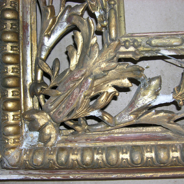 Rama w trakcie konserwacji, stan po usunięciu przemalowań i wypełnieniu ubytków kitami - fragmenty